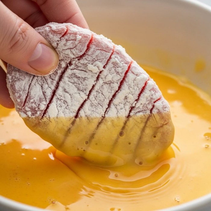 - ✔️ 3. 옷입히기: 부침가루는 최대한 얇게! 계란물은 곱게!