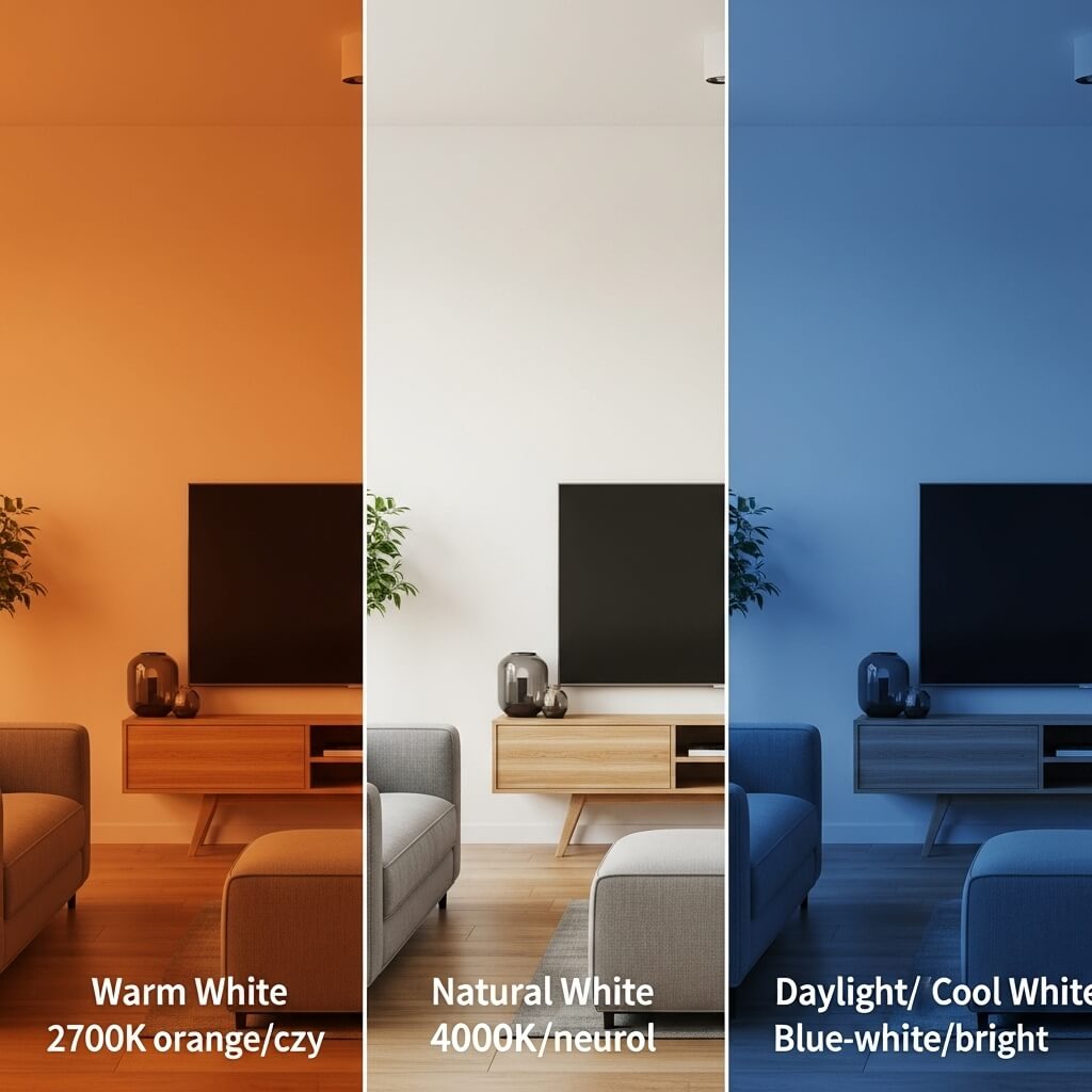 | 구분 | 전구색 (Warm White) | 주백색 (Natural White) | 주광색 (Daylight) |