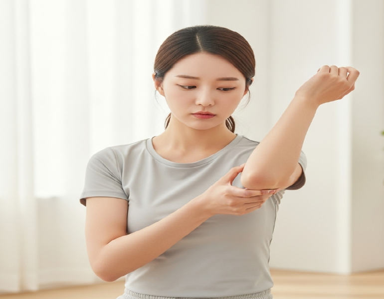 - 근력 부족 및 유연성 저하: 팔꿈치 주변 근육이 약하거나 유연성이 떨어지는 경우