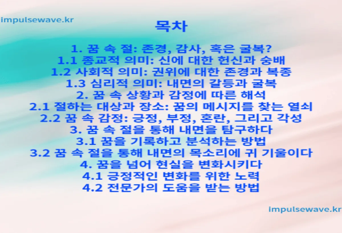 - 2.1 절하는 대상과 장소: 꿈의 메시지를 찾는 열쇠