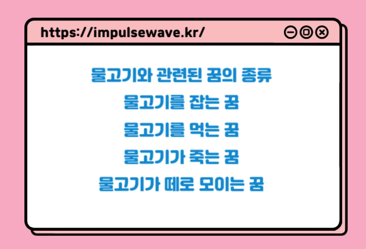 물고기 꿈의 의미는 꿈의 내용과 상황에 따라 다양하게 해석될 수 있습니다. 예를 들어, 다음과 같은 경우는 물고기 꿈이 좋은 의미로 해석될 수 있습니다.