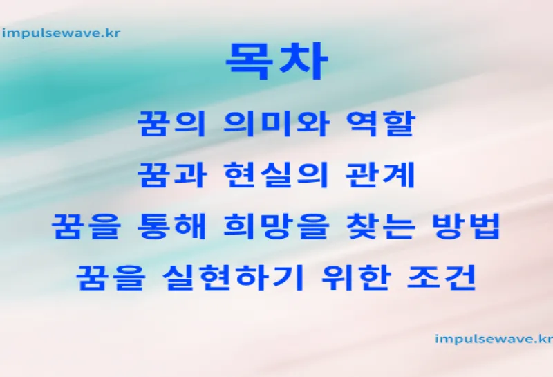 꿈은 우리의 삶을 더 풍부하고 다채롭게 만듭니다. 꿈을 실현하기 위해서는 다음과 같은 조건이 필요합니다.