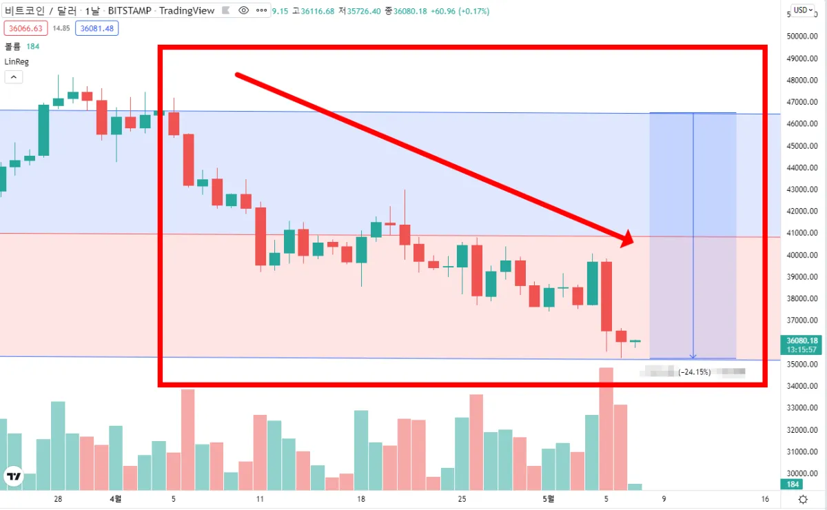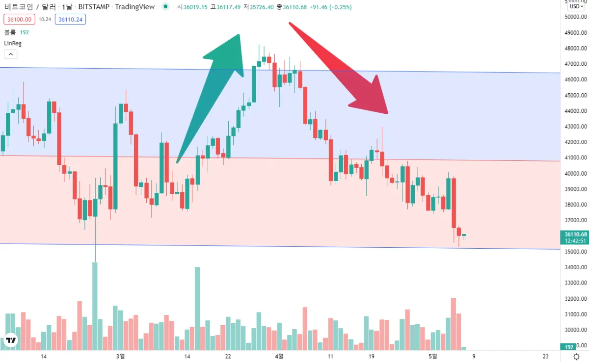 이렇게 하락할 때는 숏포지션을 진입하여 수익을 얻는 방법도 있는데요.