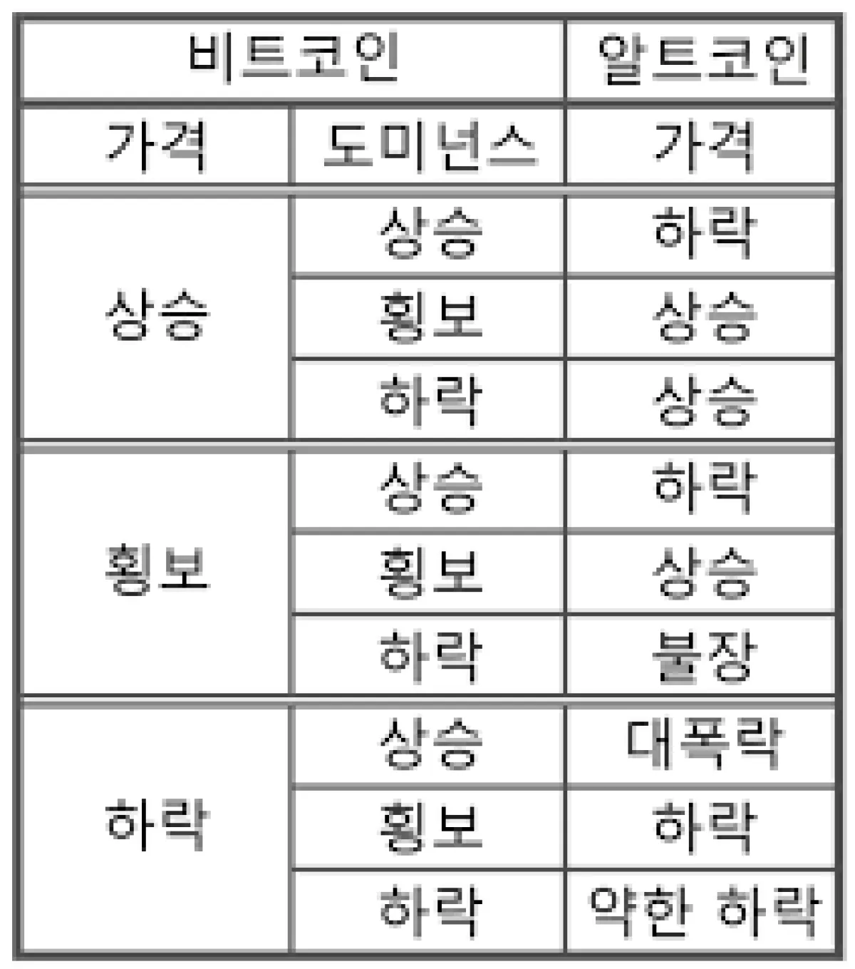○ [비트코인] 가격 횡보 → 도미넌스 상승 ↑ [알트코인] 가격 하락 ↓