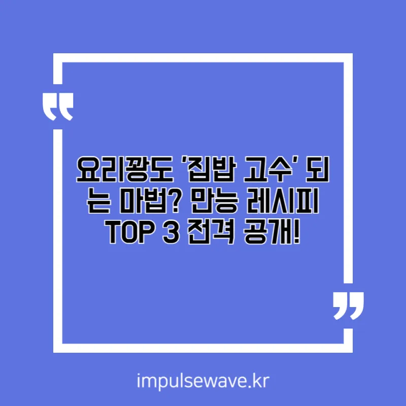 요리꽝도 '집밥 고수' 되는 마법? 만능 레시피 TOP 3 전격 공개!