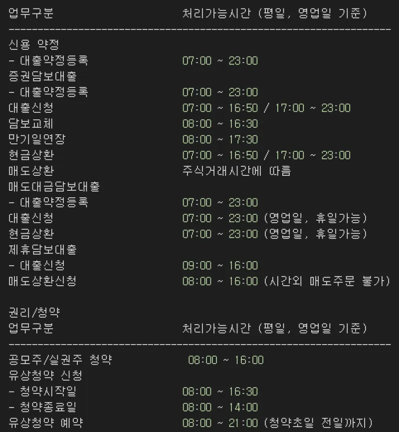 대출신청 07:00 ~ 16:50 / 17:00 ~ 23:00
