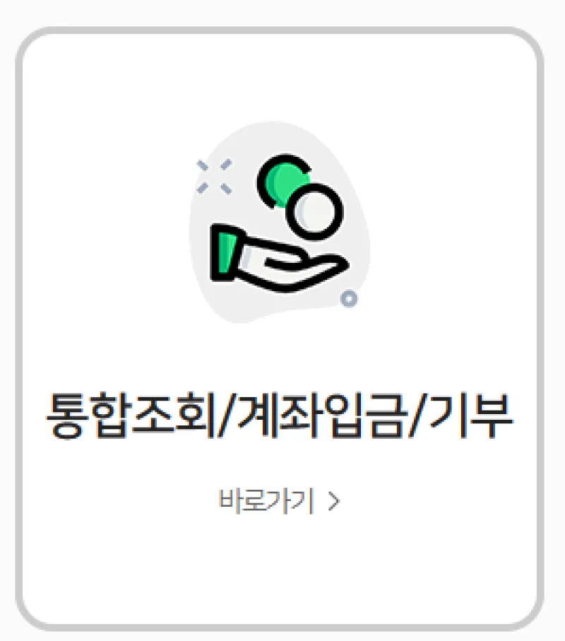 2. 메인 페이지에 있는 [통합조회/계좌입금/기부] 배너를 클릭합니다.