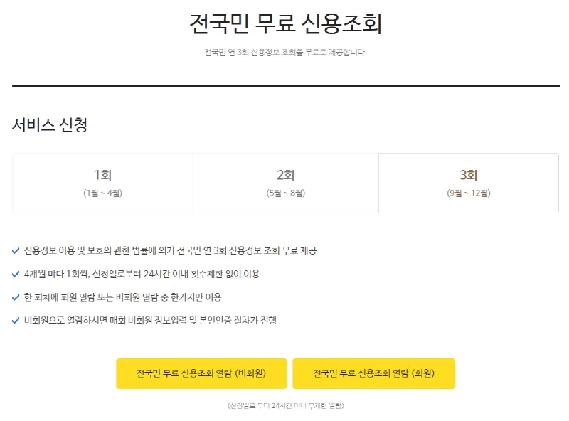 - 4개월마다 1회, 신청일로부터 24시간 횟수제한 없이 무료로 이용 가능합니다.