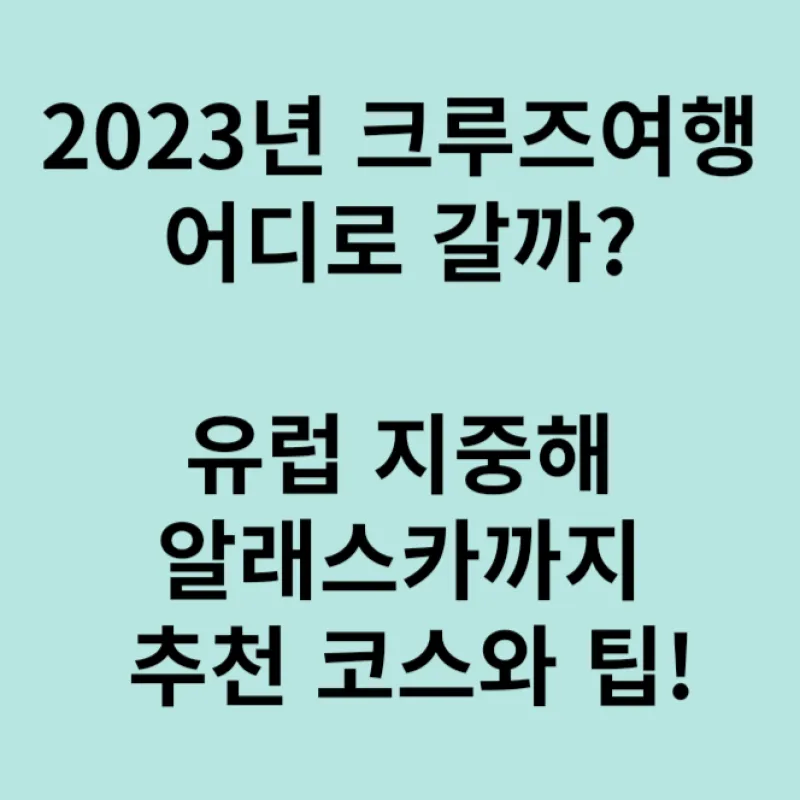 2023년 크루즈여행, 어디로 갈까? 유럽 지중해, 알래스카까지 추천 코스와 팁!