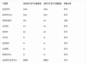 최신 기업신용등급표와 설명