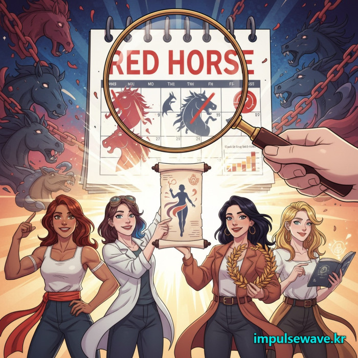 또한, '붉은 말띠 여자는 팔자가 세다'는 속설은 과거 가부장적 사회에서 활동적인 여성을 억압하기 위해 만들어진 근거 없는 미신입니다. 현대 사회에서 병오년의 강한 에너지는 남녀 불문하고 사회적 성공을 이루는 데 가장 큰 무기가 됩니다. 이런 구시대적 편견에 휘둘리지 마세요.