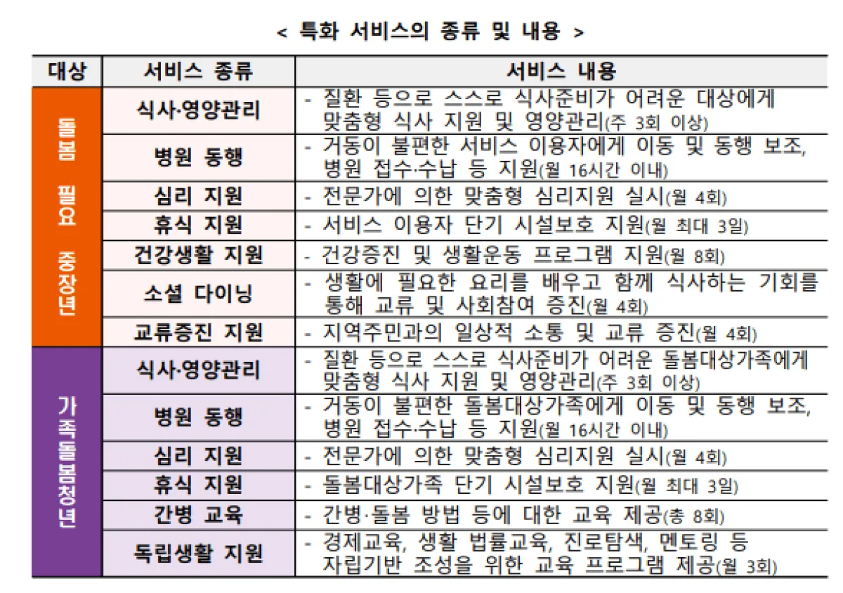 이를 통해 중장년층과 가족돌봄청년들이 일상생활에서 겪는 어려움을 해소하고, 더욱 안정적인 일상생활을 유지할 수 있도록 지원하고 있습니다.