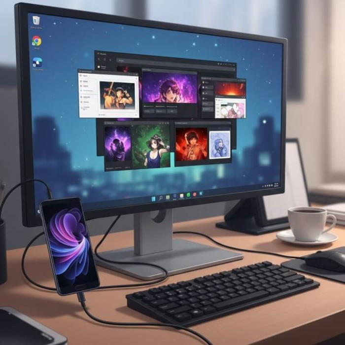 PC에 'Samsung DeX' 프로그램을 설치하고 USB 케이블로 연결하면, PC 모니터 안에 또 하나의 윈도우 창이 열립니다. 여기서 핸드폰 게임을 큰 화면으로 하거나, 핸드폰 속 문서를 키보드와 마우스로 편집할 수 있습니다. PPT 발표나 업무 효율을 중요시하는 분들에게 강력 추천합니다.