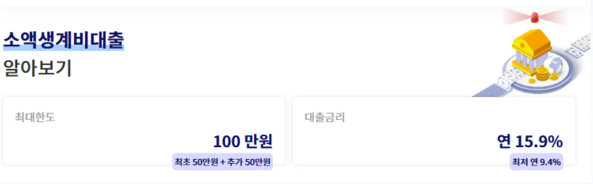 3. 대출한도: 최대 100만원 (최초 이용시 최소 50만원, 6개월간 정상이용 시 추가대출 1회 가능)