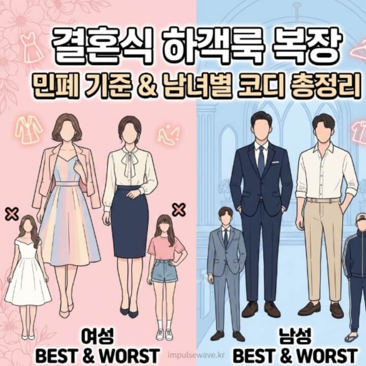 결혼식은 신랑과 신부가 주인공이 되는 날입니다. 하지만 하객들의 복장은 그날의 분위기를 좌우하는 중요한 요소이기도 합니다. 너무 화려하면 '신부 기 죽이기'라는 오해를 사고, 너무 편하게 입으면 '예의 없다'는 핀잔을 듣기 십상입니다.