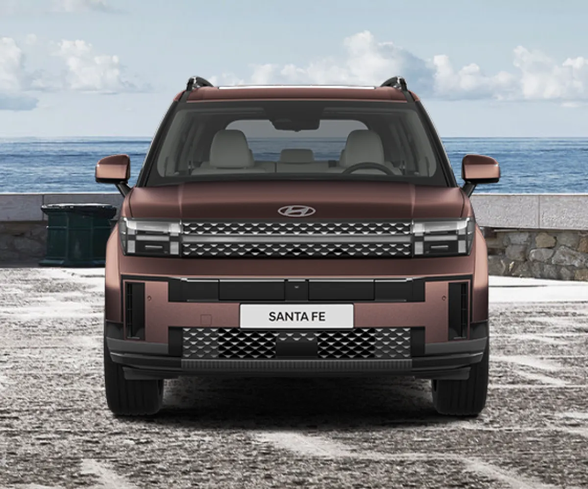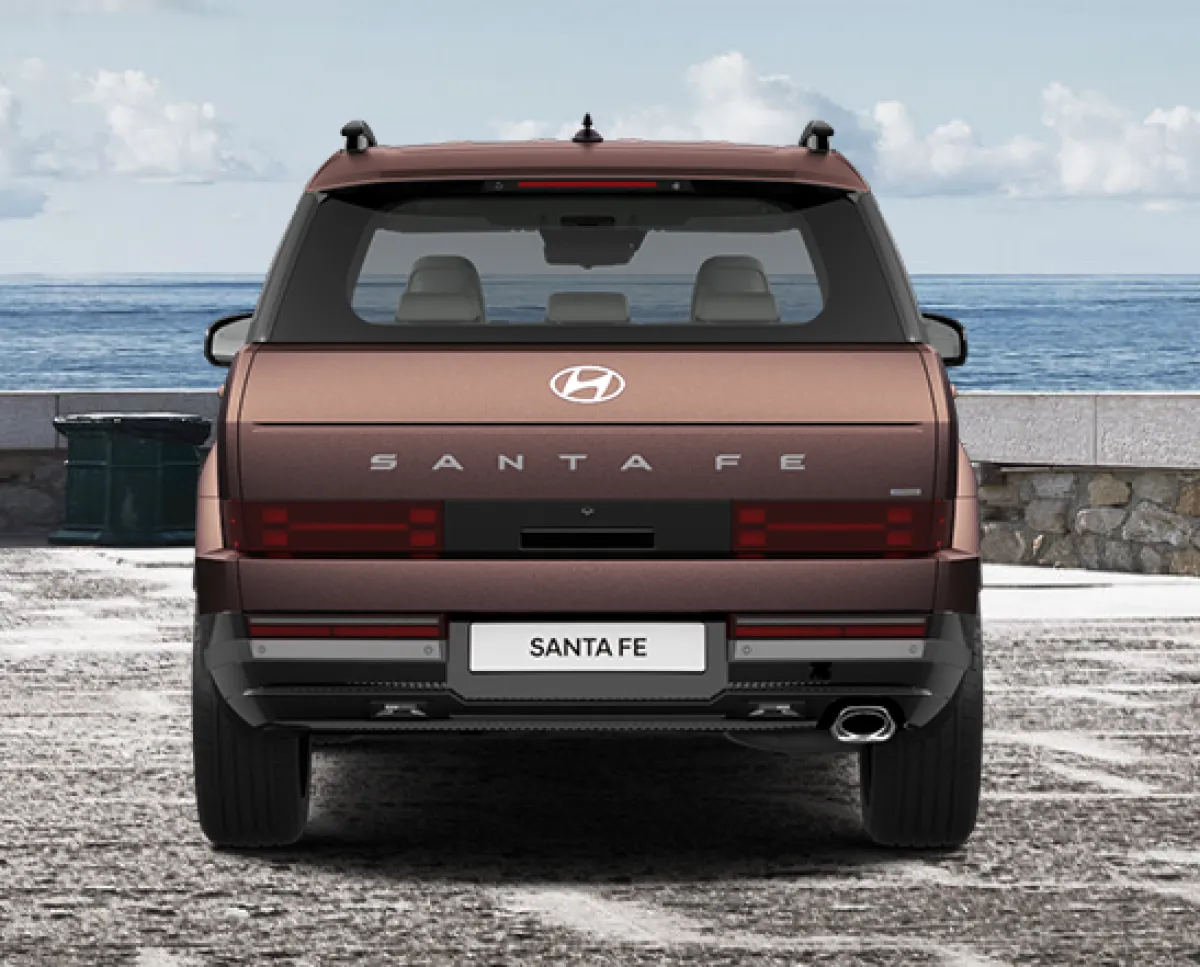 후면부는 리어램프에 H 라이트를 적용해 전면부와의 일관성을 유지하면서 싼타페만의 독특함을 강조했습니다. H 라이트는 H 모티브를 반영한 전면 범퍼 디자인과 함께, 디테일이 살아있는 그릴 패턴과 조화를 이루어 시각적인 완성도를 높이며, 높은 후드와 날카로운 펜더의 볼륨은 신형 싼타페의 웅장한 전면부를 강조합니다.