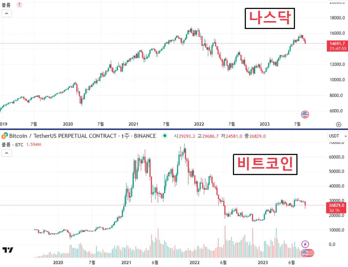 3. 비트코인, 나스닥 차트
