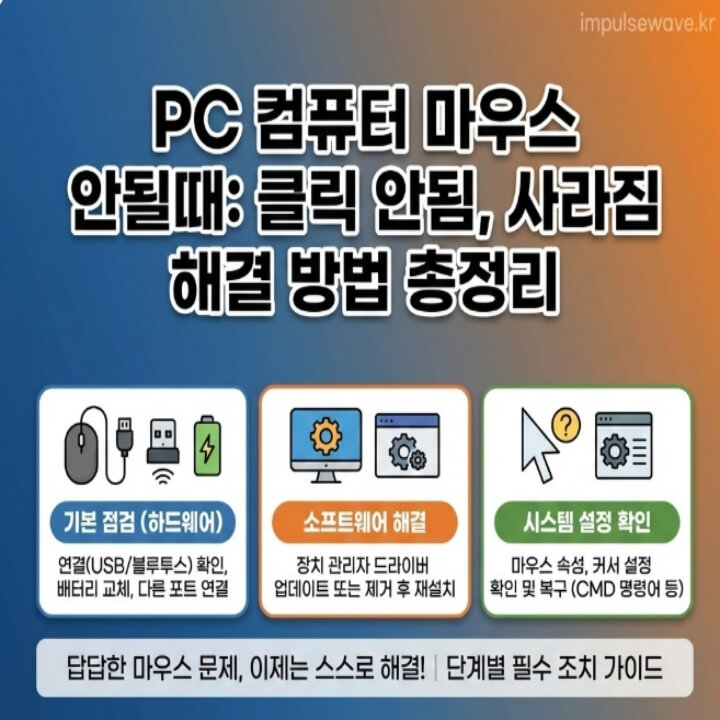 "중요한 보고서를 작성 중인데 갑자기 마우스 커서가 사라지셨나요? 혹은 클릭은 되는데 드래그가 안 되거나, 한 번 눌렀는데 두 번 클릭(더블 클릭)되는 현상 때문에 스트레스받고 계신가요?"