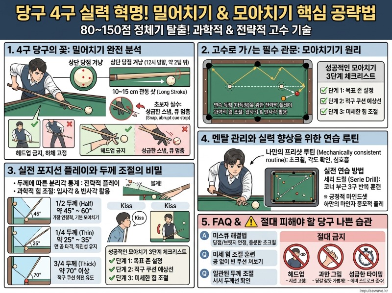 당구 4구 잘치는법 밀어치기 모아치기 완벽 가이드