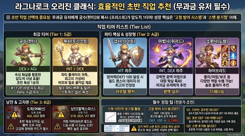 #라그나로크오리진클래식 #직업추천 #티어표 #무과금직업 #스탯찍는법 #궁수 #프리스트