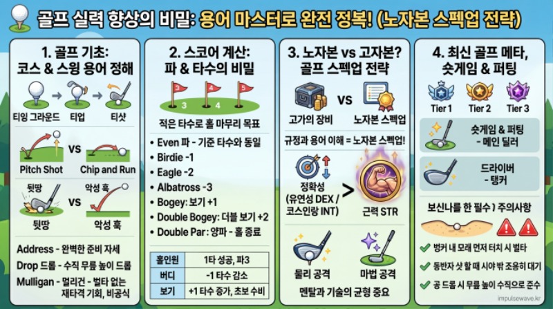 하지만 전문가들의 통계에 따르면, 룰과 용어에 대한 완벽한 이해와 코스 매니지먼트 능력이야말로 초기 자본이 전혀 들지 않는 무자본(Free-to-Play) 스펙업의 핵심이라고 해요. 비용 투자 없이도 스코어를 극적으로 낮출 수 있는 가장 효율적인 방법인 셈이죠.