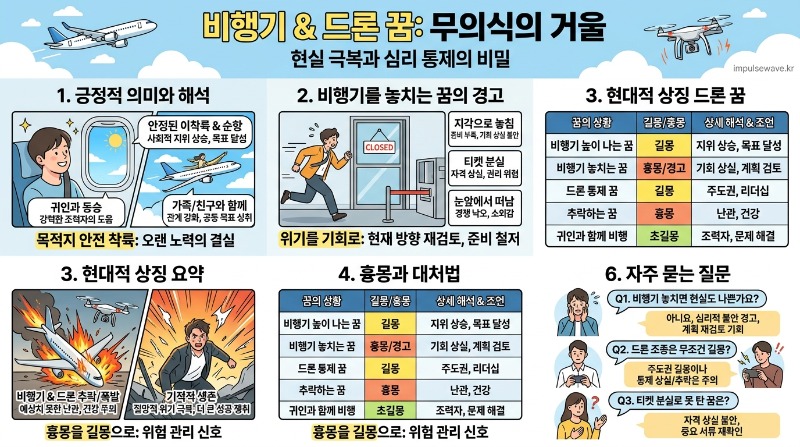 지금까지 살펴본 다양한 비행기와 드론 관련 꿈의 의미를 모바일 환경에서도 한눈에 파악하기 쉽도록 표로 깔끔하게 정리해 드릴게요.