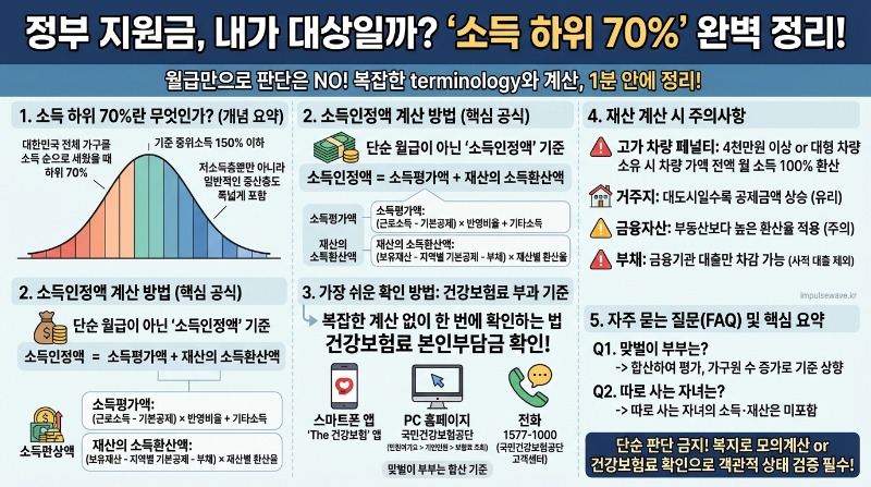 지금까지 복잡하게만 느껴졌던 소득 하위 70%의 정확한 의미와 계산 방법, 그리고 주의사항까지 모두 살펴보았는데요.