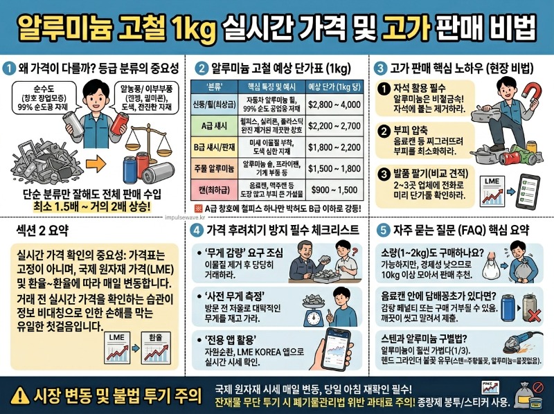 오늘은 여러분의 피 같은 자산을 안전하게 지켜드리기 위해, 알루미늄 1kg 고철 실시간 가격 확인 방법과 현장에서 절대 손해보지 않고 제값을 받아내는 전문가의 비법을 아주 상세하게 파헤쳐 드리겠습니다.