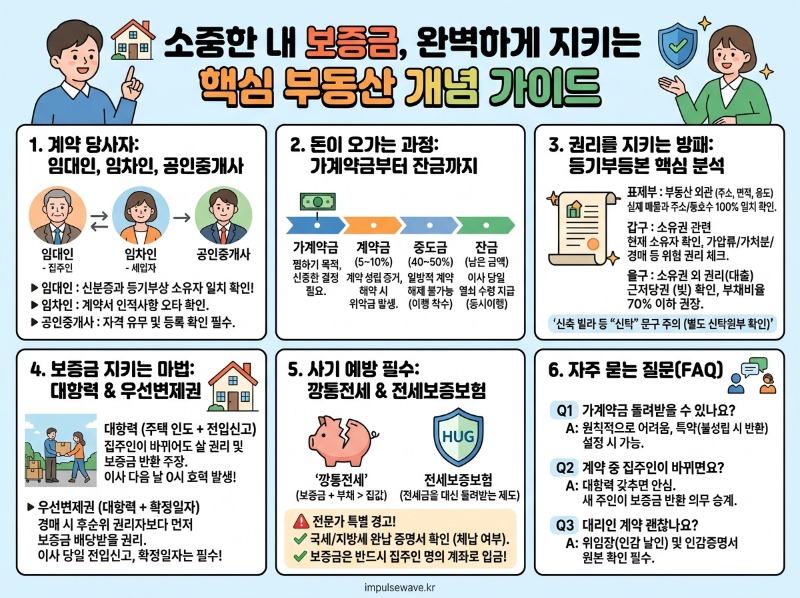 마음에 쏙 드는 집을 발견하는 것은 정말 설레는 일이지만, 그 이면에는 복잡한 계약 절차와 낯선 법률 용어들이 기다리고 있어요. 특히 최근 기승을 부리는 각종 부동산 사기를 예방하려면, 계약서에 적힌 단어 하나하나의 의미를 정확히 파악하는 것이 필수적이랍니다. 오늘은 여러분의 소중한 보증금을 완벽하게 지켜줄 핵심 개념들을 아주 쉽고 상세하게 풀어드릴게요.