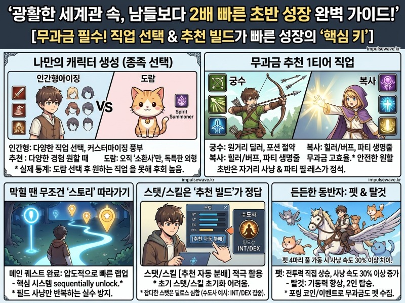 물론 '나는 무조건 귀여운 고양이 외형이 좋다'라며 외형적 만족감을 우선시하는 반론이 있을 수 있어요. 하지만 장기적인 파티 플레이와 다양한 직업 경험을 원하신다면, 범용성이 뛰어난 인간형으로 시작하는 것이 훨씬 안정적인 성장 기반을 마련해 줍니다.