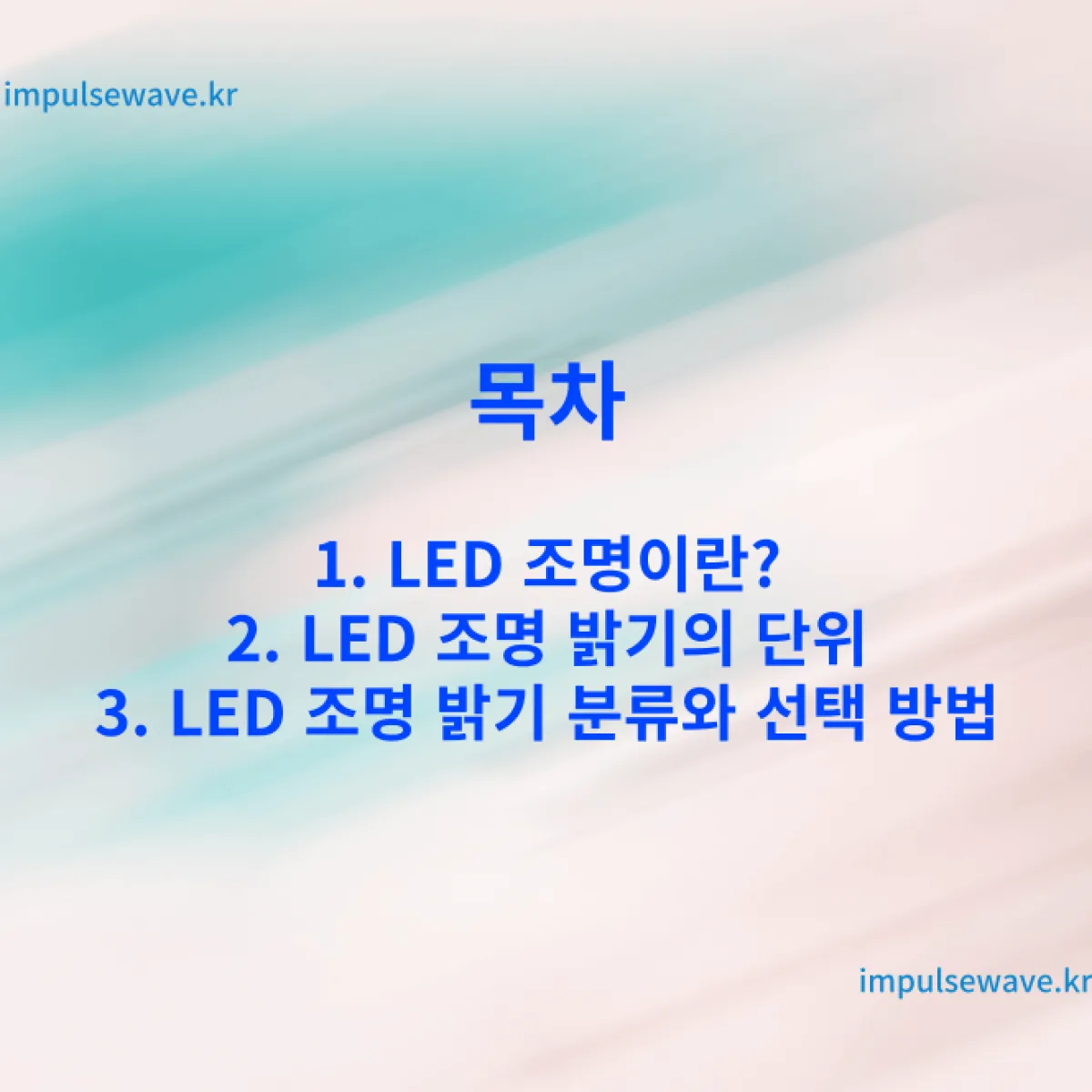 LED 조명의 밝기는 크게 저조도(low brightness), 중조도(medium brightness), 고조도(high brightness)로 분류할 수 있습니다.
