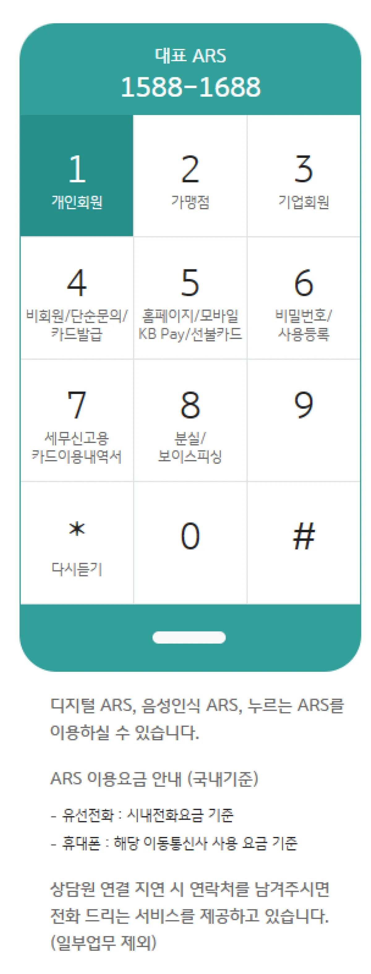 2.3 국민카드 고객센터의 상담원 연결 방법