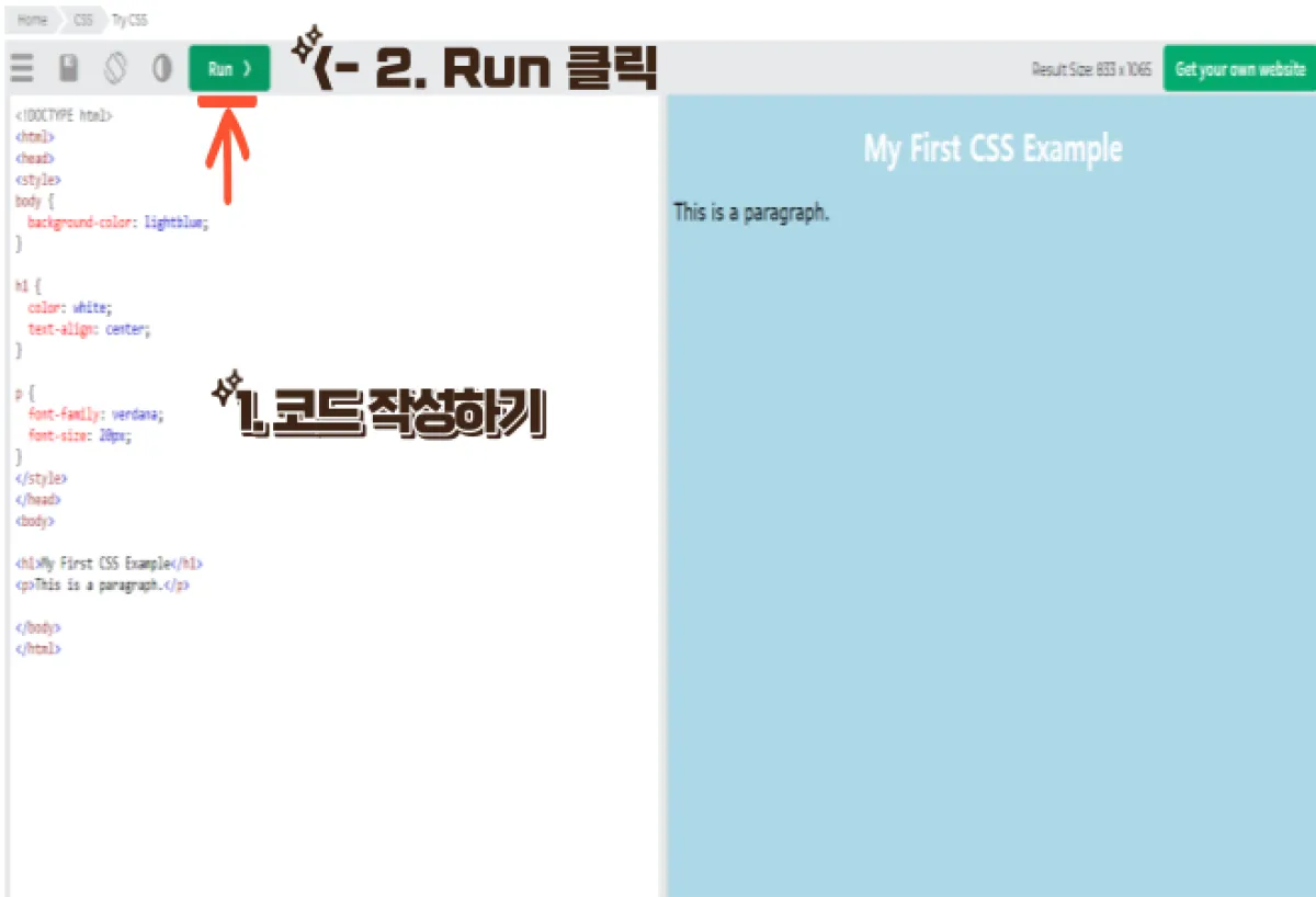 w3schools 코드 테스트를 할 수 있는 곳입니다.