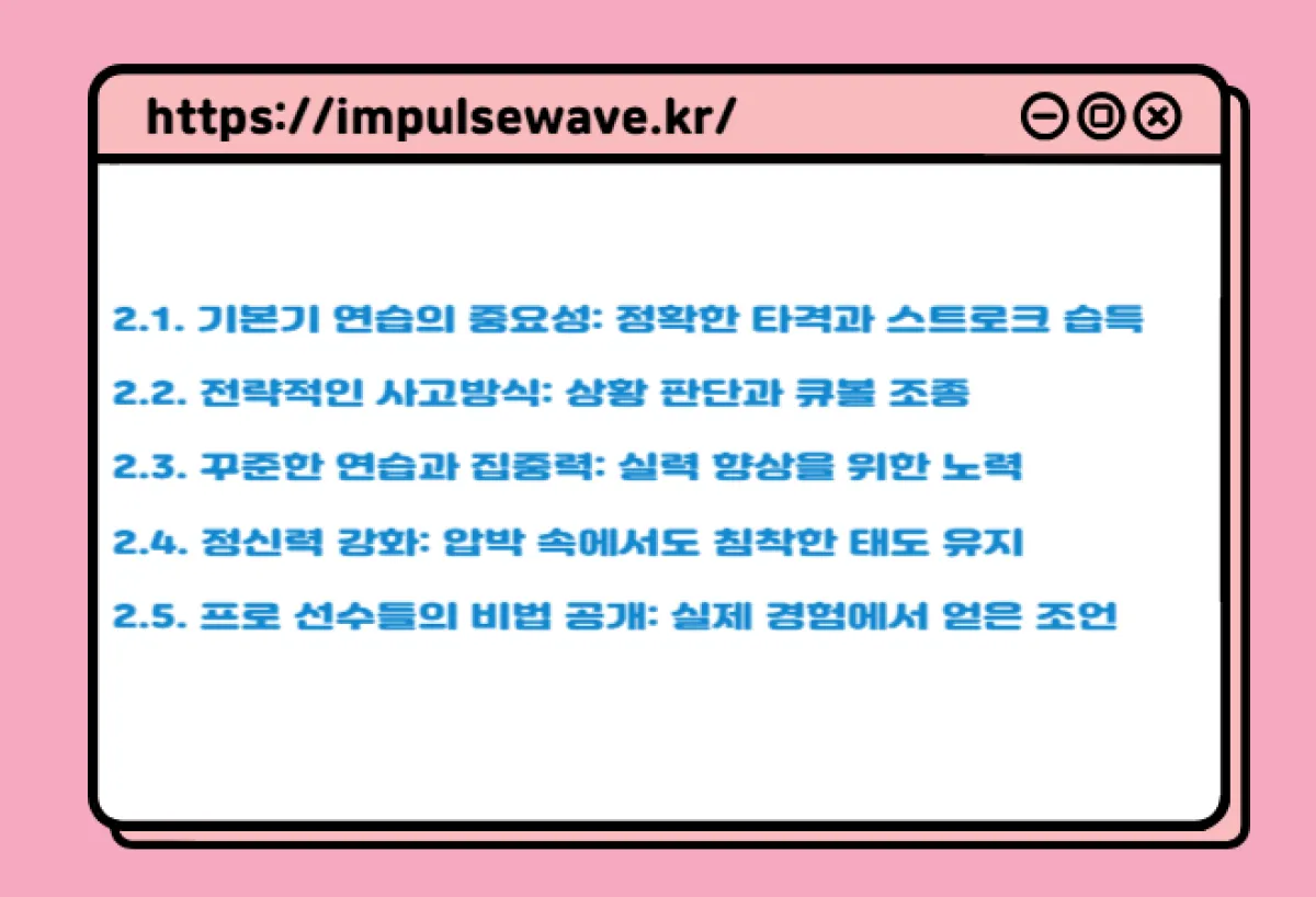 - 2.2. 전략적인 사고방식: 상황 판단과 큐볼 조종