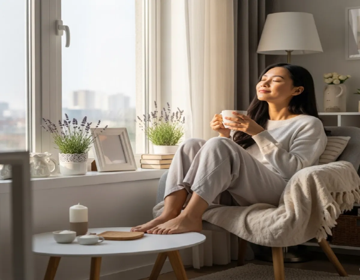 따뜻한 물로 목욕이나 샤워하기, 좋아하는 향의 아로마 오일 활용하기, 편안한 음악 감상, 가벼운 스트레칭이나 요가, 명상 등을 통해 긴장된 몸과 마음을 부드럽게 이완시켜 주세요. 특히 잠들기 전 이러한 활동은 숙면에도 큰 도움이 됩니다.