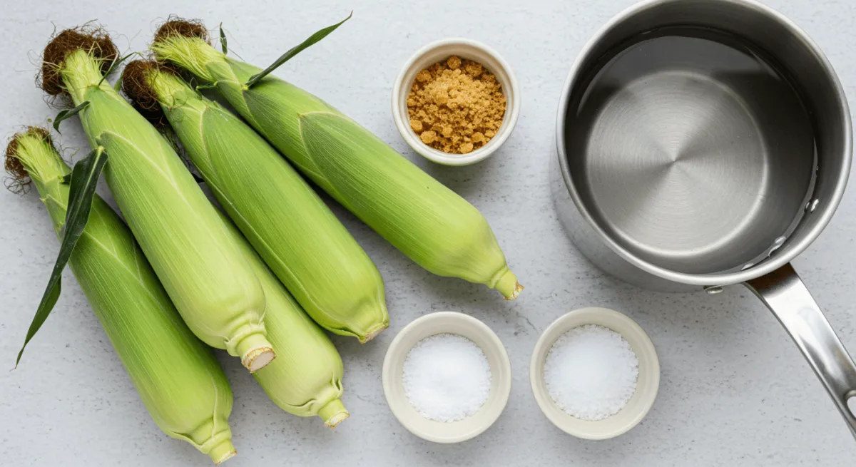 옥수수 껍질을 전부 벗기지 마세요! 가장 안쪽의 얇은 속껍질 2~3겹은 남겨두세요. 이 껍질이 옥수수의 수분과 단맛이 빠져나가는 것을 막아주는 천연 덮개 역할을 합니다. 겉껍질과 옥수수수염은 따로 모아둡니다. - 2단계: 냄비에 담고 '이것' 넣기