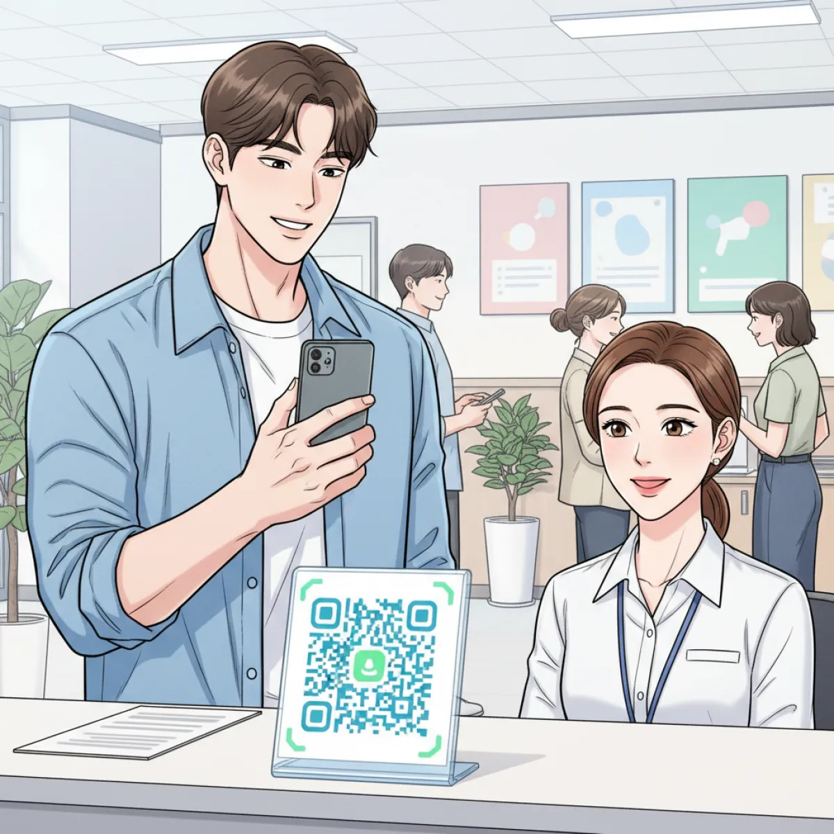 IC 카드로 교체하기 싫거나 비용이 부담스러운 경우 선택할 수 있습니다. 주민센터에 직접 방문하여 창구의 QR코드를 찍어 발급받는 방식입니다.