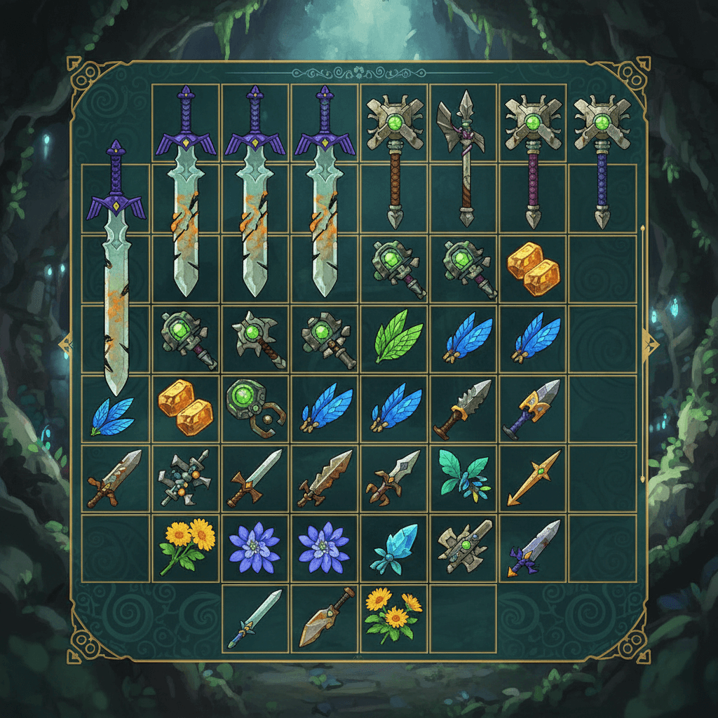 현실적으로 421개를 다 모으는 것도 엄청난 시간이 걸립니다. 그래서 저는 무기 주머니를 최우선으로 확장하시길 강력 추천해요. 활과 방패는 상대적으로 소모 속도가 느리지만, 무기는 스크래빌드 소재에 따라 활용도가 무궁무진하거든요. 초반에는 무기 슬롯 5~6개만 늘려도 게임이 훨씬 쾌적해집니다.
